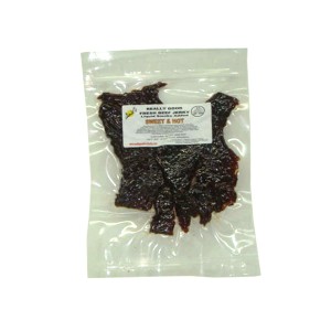 Our Sweet and Hot Beef Jerky flavor is a taste bud pleaser! A sweet, tender jerky with a great combination of spices. This jerky is not hot like you would think from the name but it is an amazing flavor!